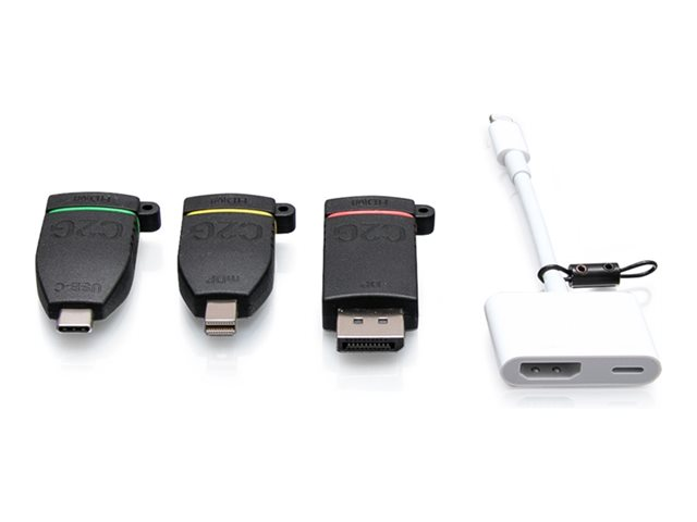 C2G Retractable Universal Mount 4K HDMI Adapter Ring with Color Coded Mini DisplayPort, DisplayPort, USB-C, and Lightning - Videoadaptersett - svart - 4K-støtte