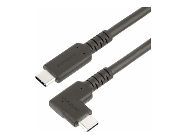 StarTech.com 1.6ft (50cm) Rugged Right Angle USB-C Cable, USB 3.2 Gen 2 (10 Gbps), USB C to C Data Transfer Cable, 4K 60Hz DP Alt Mode, 100W Power Delivery - 90 Degree USB-C Cable (RUSB31CC50CMBR) - USB-kabel - 24 pin USB-C (hann) rett til 24 pin USB-C (hann) rettvinklet - USB 3.2 Gen 2 - 50 cm - 4K 60Hz støtte, robust - svart