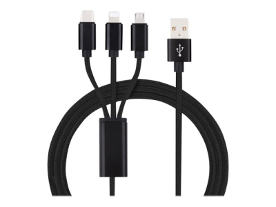 Insmat 3-IN-1 - Lightning-kabel - USB hann til Micro-USB type B, Lightning, 24 pin USB-C hann - 1.2 m - svart 133-1003