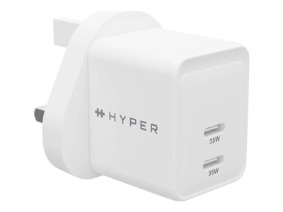 HyperJuice - Strømadapter - GaN - 35 watt - QC 3.0, Power Delivery 3.0 + PPS - 2 utgangskontakter (24 pin USB-C) - hvit - Storbritannia