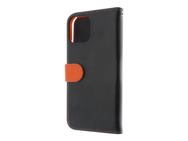 Insmat Exclusive - Lommebok for mobiltelefon - lær, kartong+papir+aluminiumsfolie - svart / oransje - for Apple iPhone 11 650-2967