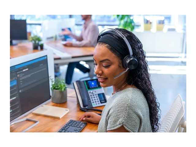 Poly Voyager Focus 2 - Hodesett - on-ear - Bluetooth - trådløs, kablet - USB-A via Bluetooth-adapter - svart - Certified for Microsoft Teams