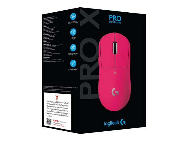Logitech G PRO X SUPERLIGHT - Gaming - mus - høyrehendt - optisk - 5 knapper - trådløs - 2.4 GHz - USB Logitech LIGHTSPEED-mottaker - magenta