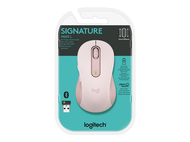 Logitech Signature M650 L - Mus - stor størrelse - optisk - 5 knapper - trådløs - 2.4 GHz, Bluetooth - Logitech Logi Bolt USB-mottaker - rosa