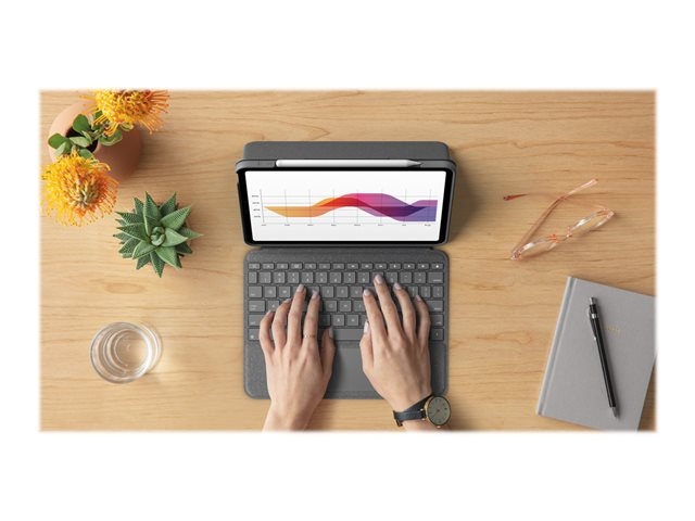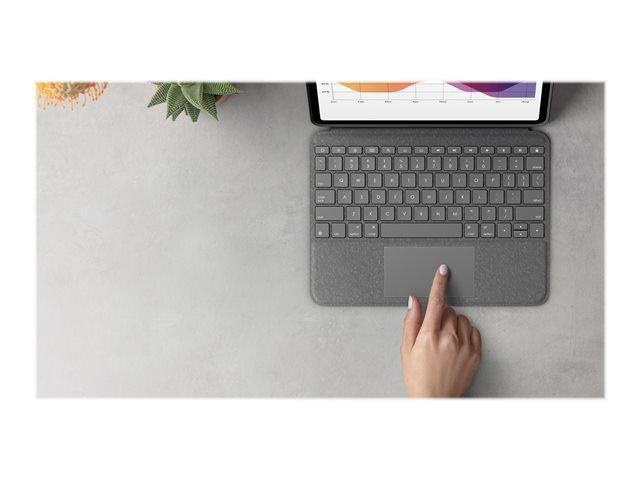 Logitech Folio Touch - Tastatur og folioveske - med styrepute - bakbelysning - Apple Smart connector - QWERTY - Storbritannia - Oxford-grå - for Apple 10.9-inch iPad Air (4. generasjon, 5. generasjon)