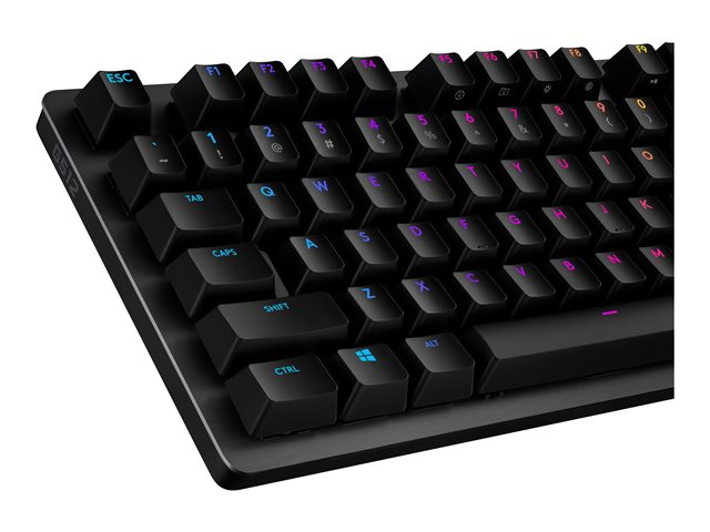 G512 er et ypperlig spilltastatur med valg av avanserte Romer-G Tactile, Romer-G Linear og GX Blue mekaniske brytere. Med avansert spillteknologi og en konstruksjon basert på aluminiumslegeringer, er G512 enkel, slitesterk og full av funksjoner. Bilder som vises er av G512 med Romer-G nøkler.