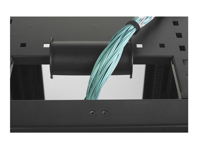 Cable Fall (radius drop) provides a proper bend radius for cabling routed into/out of enclosures or overhead cable management systems. Cable fall attaches in multiple locations including the enclosure roof holes, open frame rack sides, vertical cable manager openings and rungs of overhead cable ladder systems. Secure cabling in place using slots in the accessory and hook-and-loop fasteners straps.