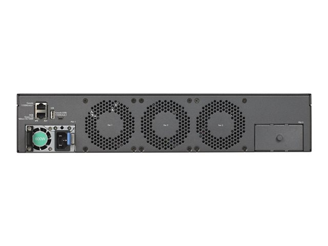 The NETGEAR M4300-96X is a 2RU modular switch that comes either empty or pre-populated with 48 SFP+ ports and supporting up to 96-port 10GBASE-T copper (RJ-45) with first 48 ports capable of PoE+, 96-port 10GBASE-X fiber (SFP+), 24-port 40GBASE-X fiber (QSFP+), or a combination. The M4300 family provides world-class services for server and storage interconnect, mid-enterprise edge and SMB core. SDVoE-Ready, M4300 switches streamline AV-over-IP deployments with Zero Touch multicast. Layer 3 feature set includes static, policy-based and dynamic routing as standard.