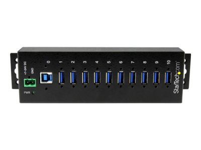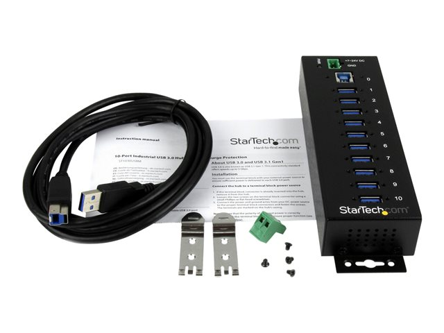 StarTech.com 10-Port USB 3.0 Hub - Metal Industrial USB-A Hub with ESD & Surge Protection - Din Rail, Wall or Desk Mountable - TAA Compliant USB Expander Hub (ST1030USBM) - Hub - 10 x SuperSpeed USB 3.0 - DIN-skinnemonterbar - DC-strøm - for P/N: ITB20D3250, USB312SAT3CB, USB315CB2M, USBLT1MWS, USBLT2MBR, USBLTM1MBK, USBLTM1MWH