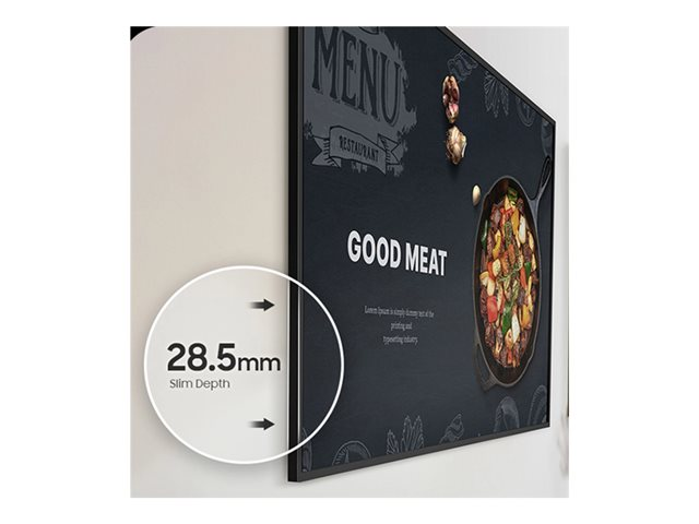 Designed for continuous operation, the Samsung QM43C can run 24 hours a day, ensuring your message is always on display. Its robust connectivity options, including HDMI, DisplayPort, Bluetooth, and Wi-Fi, provide the flexibility needed to integrate into any setup seamlessly. Additionally, the display's energy efficiency is certified by ENERGY STAR 8.0 and EPEAT Bronze, making it a cost-effective choice for environmentally conscious businesses. With its slim design, anti-glare coating, and VESA compatibility, the Samsung QM43C is not only functional but also aesthetically pleasing and easy to install in any location.
