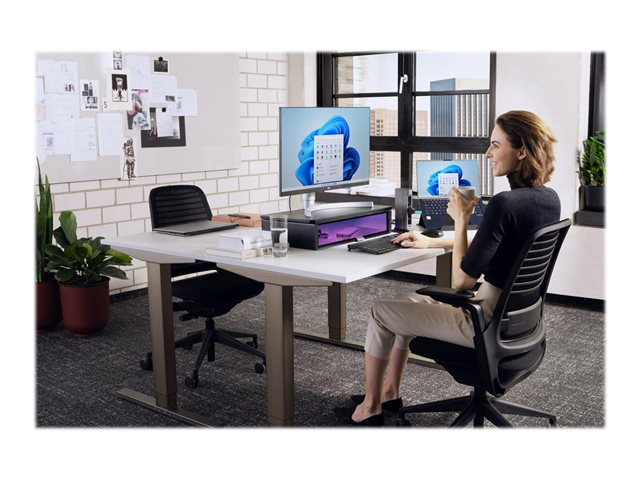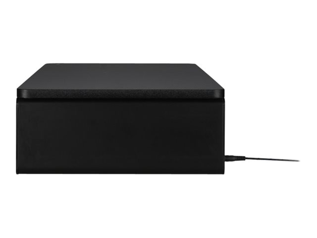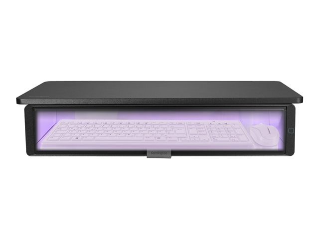 When used as directed, the UVStand Monitor Stand with UVC sanitization compartment safely and easily helps to sanitize keyboards, mice, trackballs, mobile phones and other devices, while promoting healthy posture and optimal comfort. The spacious sanitization compartment accepts most full-sized keyboards and can be used to store desktop items when not sanitizing, freeing up desktop space. The fully-contained UVC LEDs safely sanitize, eliminating up to 99.9% of bacteria and viruses on any exposed surface within 10 minutes, without the use of chemicals, liquids or wipes. Supports monitors up to 18kg (40lbs) and can also be used as a laptop stand, raising the laptop to optimal eye level.