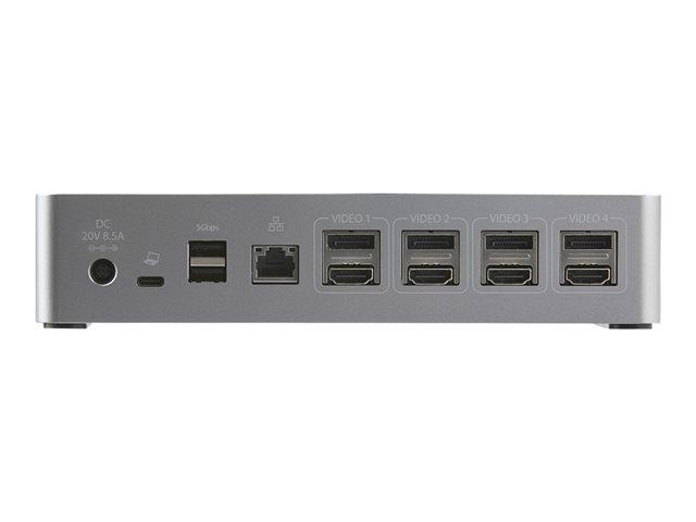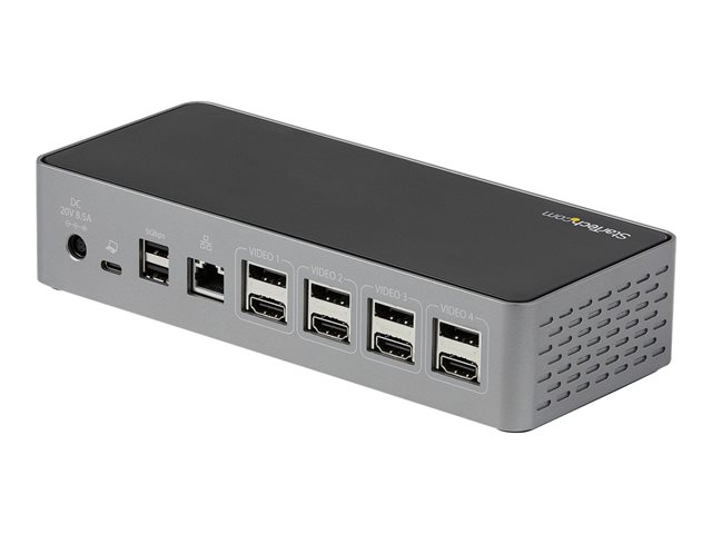 The StarTech.com USB-C Dock is a universal docking solution that transforms your workspace into a high-performance workstation. With its ability to support up to four monitors at 4K 60 Hz through both DisplayPort and HDMI, it offers display flexibility. The dock also features 100 W Power Delivery Charging, ensuring your laptop and connected devices are always powered up. High-speed data transfer is a breeze with USB 3.2 Gen 1 and Gen 2 ports, alongside a USB Type-C port equipped with Battery Charging 1.2. For professionals requiring reliable network connections, the dock includes Gigabit Ethernet with PXE boot and wake on LAN support. Additionally, the docking station is designed with a Kensington security slot for added protection. Whether you're a creative professional, tech enthusiast, or business user, the StarTech.com USB-C Dock enhances your productivity and simplifies your setup with its advanced features and robust performance.